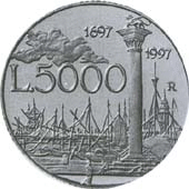 MONETE LIRE» Italia Repubblica» Argento | ITR£714 - 1997 - 5.000 Lire Canaletto FS Italia - tiratura 7.550 | Prezzo 33,00 €
